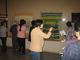 「伊佐利彦・志村ふくみ二人展」を佐治ゆかり学芸員の講義と案内で鑑賞しました。染色・染織の分野で日本を代表する二人の作家について、その作風や作品の魅力、今回の展示の仕方などについて講義いただき、その後ギャラリートークで二人の代表作約160点を詳しく説明いただきながら鑑賞しました。
