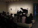 コンサートは伊砂利彦の作品が展示されている企画展示室で行われ、フランス音楽の第一人者であるピアニスト青柳いづみこ氏が、ドビュッシーの「前奏曲集」を中心に曲と作品についての解説を交えながら演奏しました。各々の作品が演奏される曲ごとに共鳴し始めるようで、作品に囲まれて音楽を聴くという、美術館ならではのコンサートでした。